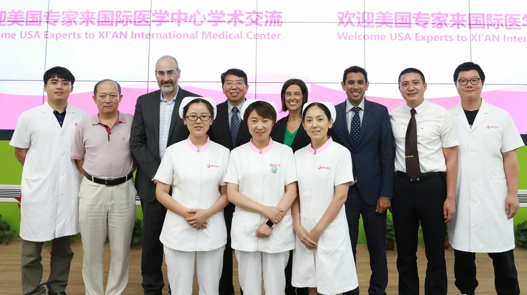 7月26日,美國(guó)斯克里普斯醫(yī)院四位專(zhuān)家應(yīng)邀到西安國(guó)際醫(yī)學(xué)中心進(jìn)行學(xué)術(shù)交流與參觀。西安國(guó)際醫(yī)學(xué)中心院長(zhǎng)尹強(qiáng)、心臟病醫(yī)院副院長(zhǎng)張金洲等領(lǐng)導(dǎo)熱情接待了到訪專(zhuān)家。