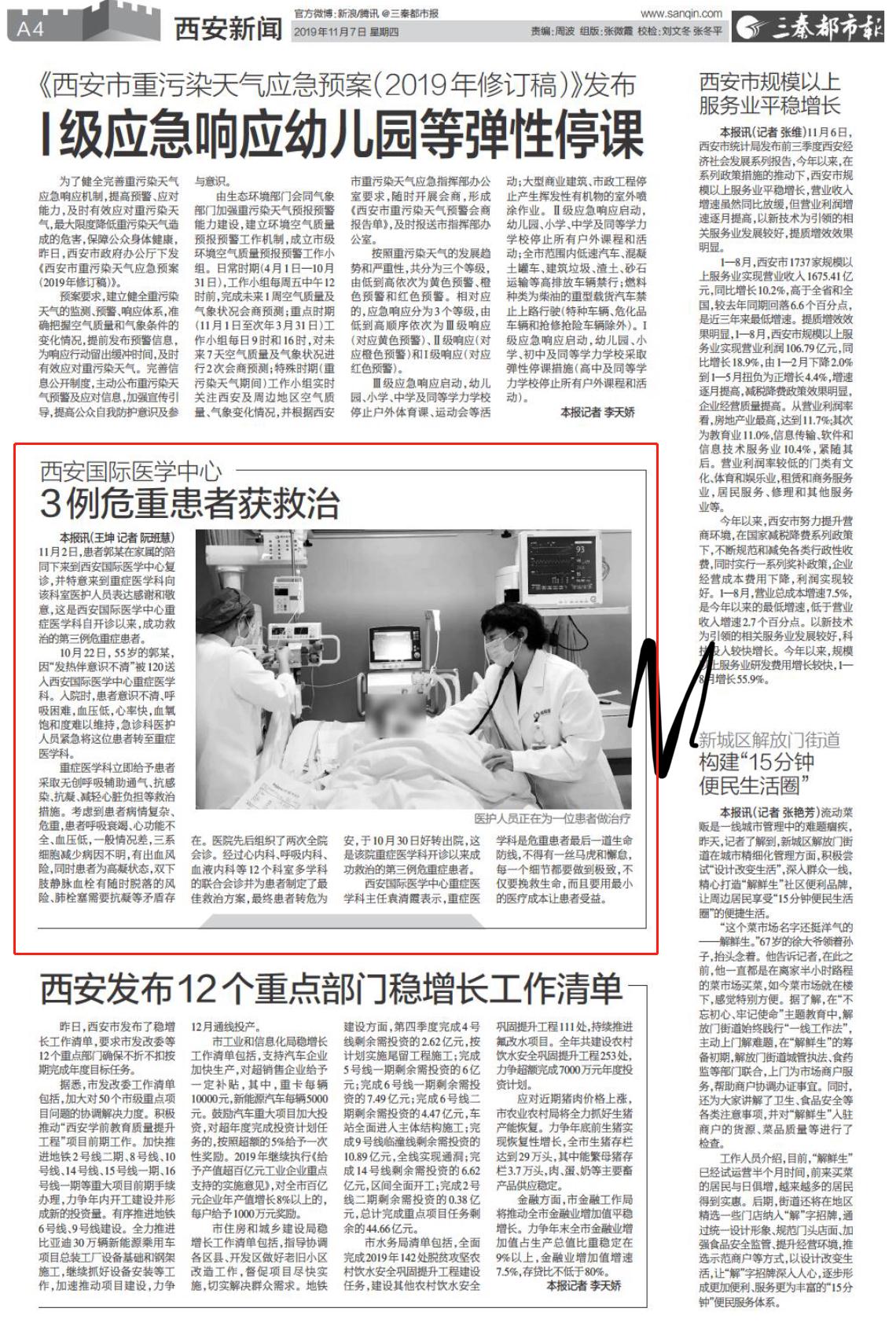 三秦都市報(bào)報(bào)道—西安國際醫(yī)學(xué)中心3例危重患者獲救治