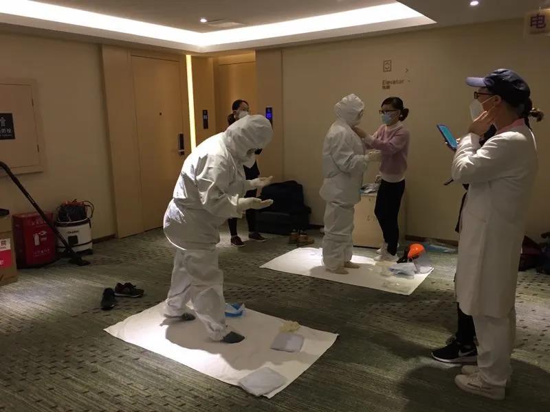 從伴隨清晨第一縷陽光睜眼開始,測體溫、多飲水、適當(dāng)運動鍛煉呼吸、84消毒液噴灑涂抹房間角角落落等等,一樣不落。我自知已經(jīng)踏上這光榮的戰(zhàn)場和兄弟姐妹們并肩作戰(zhàn)。同時,為了做好戰(zhàn)斗準(zhǔn)備,作為戰(zhàn)士的我們今日進(jìn)行了穿脫“盔甲”的嚴(yán)格培訓(xùn)。