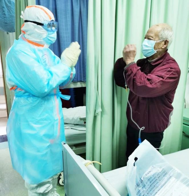 一名從敬老院轉(zhuǎn)來(lái)的老爺爺,入院第一天精神狀態(tài)不好,護(hù)士長(zhǎng)給他喂飯還容易嗆咳。第二天,我們一起去給老爺爺喂飯,陪他聊天,老爺爺吃了一份盒飯,對(duì)我們說(shuō):“謝謝你們!你們一定要保護(hù)好自己,我們最大的愿望就是你們可以平安回家!”我沒(méi)控制住自己的眼淚。