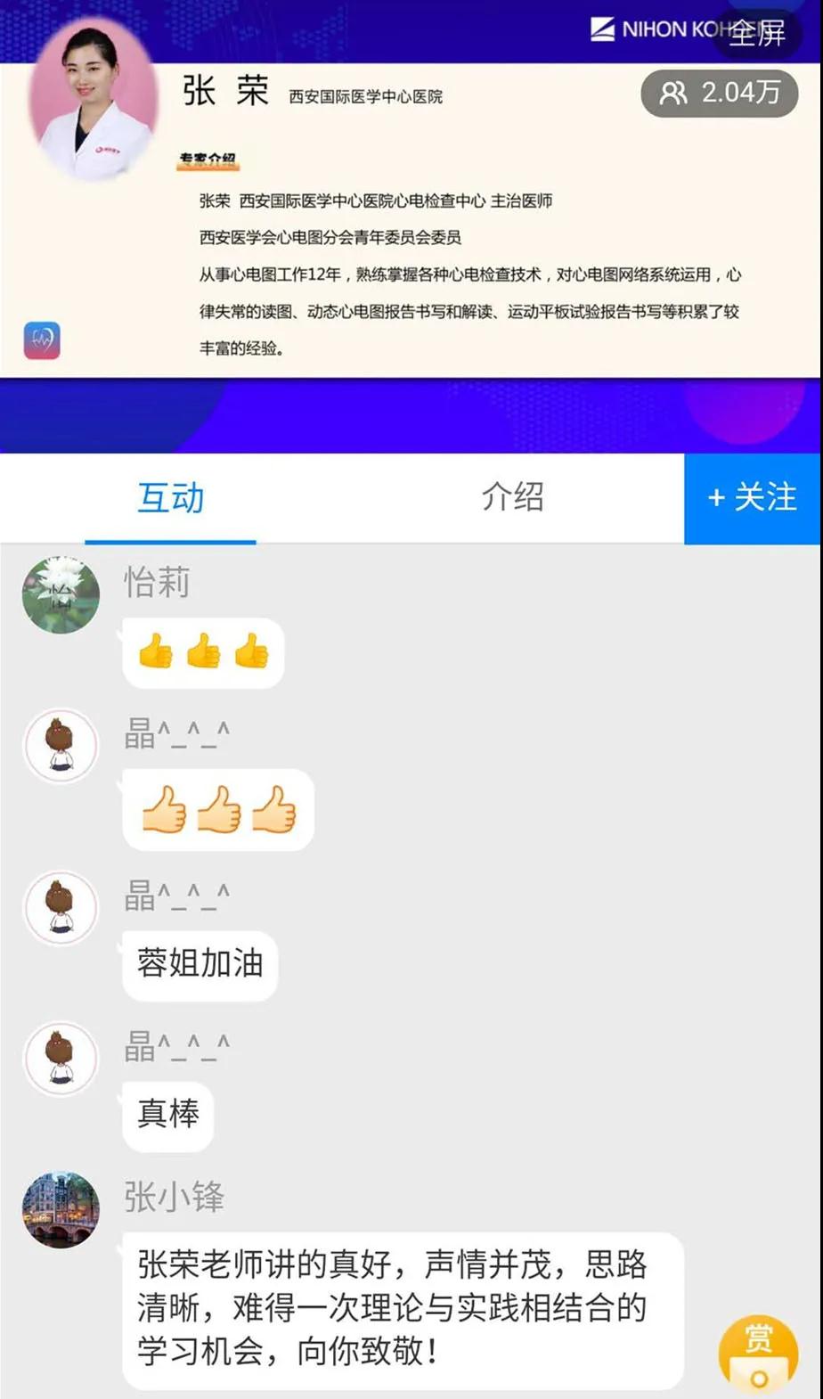 慧聚星光,解讀“心”聲。當日下午,“心專家 云論壇——西安國際醫(yī)學中心醫(yī)院心電講堂專場”如約而至。西安國際醫(yī)學中心醫(yī)院心電檢查中心主任張錄興、張榮主治醫(yī)師為2萬余名同仁線上直播授課。