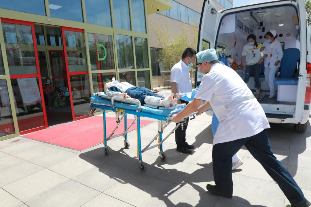 下午13時,楊峰副院長宣布演練正式開始。120急救站分診護士杜娟接到“120”急救中心電話后,立即通知各科室做好出診準(zhǔn)備,院內(nèi)迅速啟動應(yīng)急預(yù)案、開放急診綠色通道。同時急診科副主任劉曉曼組織醫(yī)護人員做好接診準(zhǔn)備。