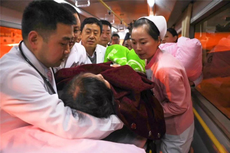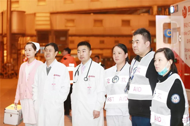 12月4日晚18點(diǎn),西安國際醫(yī)學(xué)中心醫(yī)院神經(jīng)外科已做好了一切迎接患者的準(zhǔn)備,賀世明主任領(lǐng)隊的西北首臺腦卒中救援車也準(zhǔn)時從西安國際醫(yī)學(xué)中心醫(yī)院出發(fā)。救援過程中,得到了西安咸陽機(jī)場海關(guān)、西安咸陽國際機(jī)場運(yùn)行控制協(xié)調(diào)中心以及春秋航空的大力支持,晚20點(diǎn)55,落地的航班與救護(hù)車第一時間在停機(jī)坪實現(xiàn)了無縫對接,醫(yī)護(hù)人員齊心協(xié)力將患者安全轉(zhuǎn)運(yùn)至西安國際醫(yī)學(xué)中心醫(yī)院,接受進(jìn)一步治療。