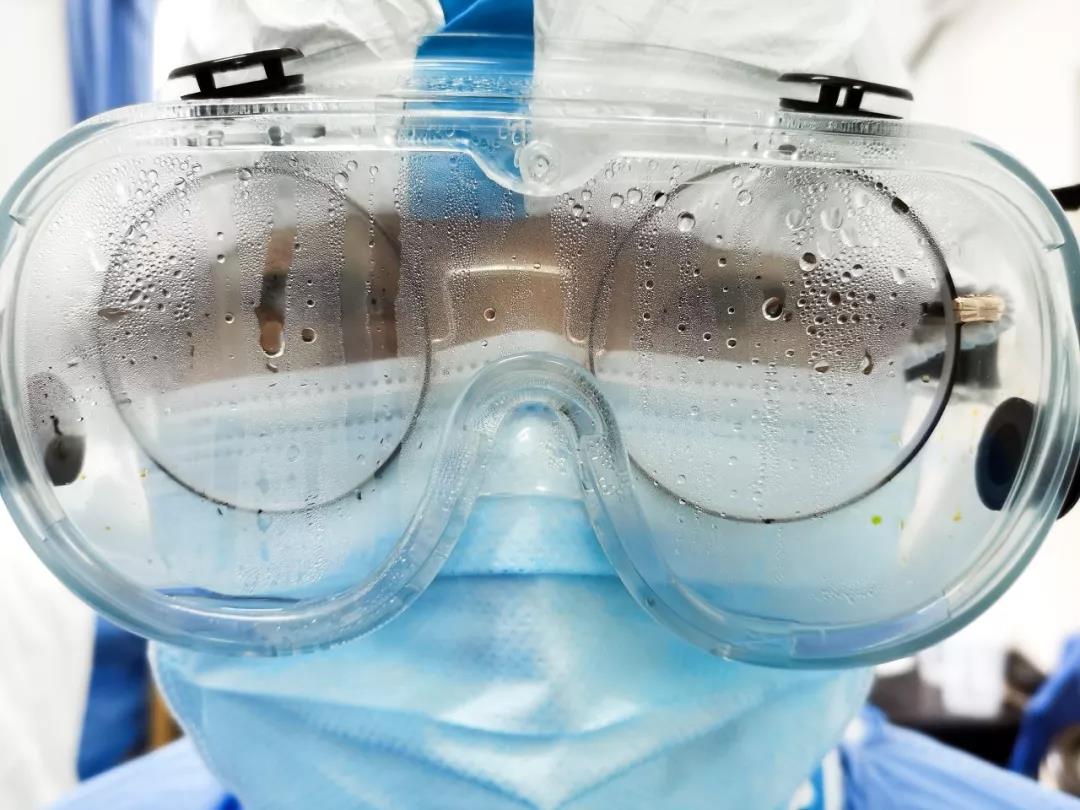 臉上的防護(hù)罩勒痕清晰可見(jiàn),