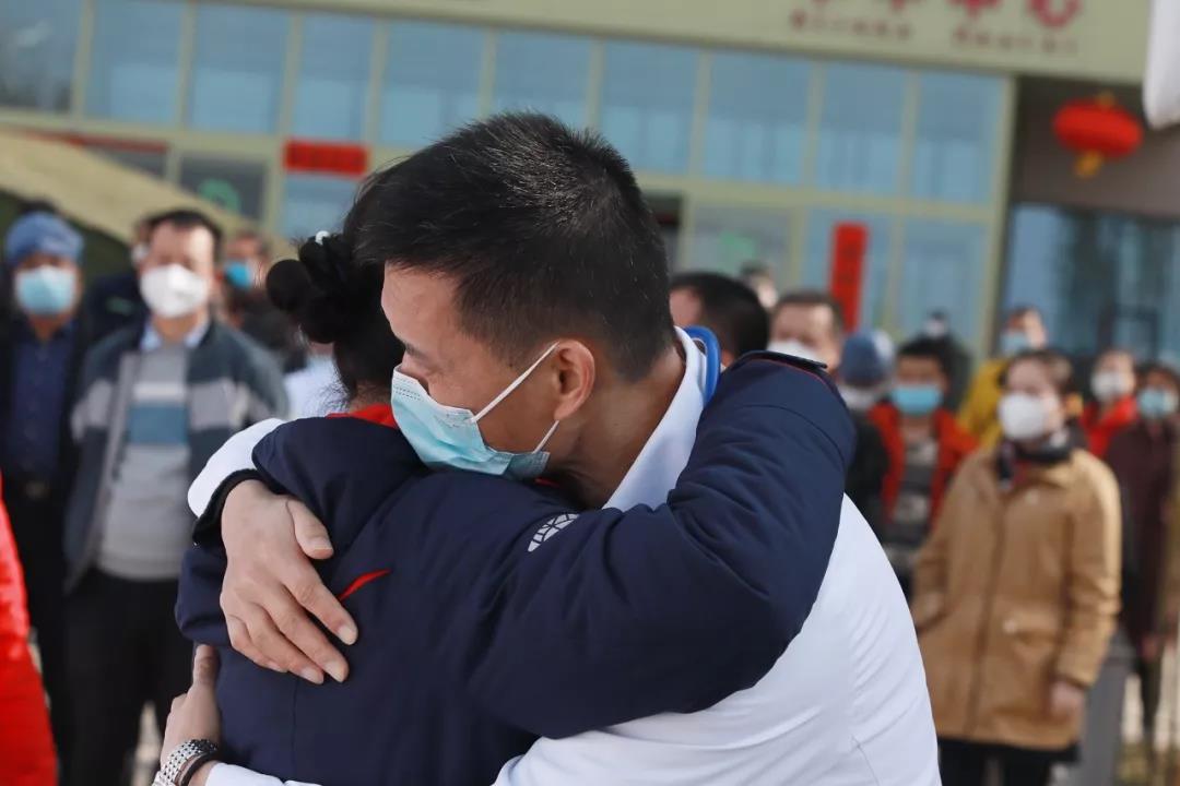 臨行前,6名隊(duì)員背起行囊與大家揮手道別,急救中心沈劍主任擁抱李晶,拍拍她肩膀說“加油!我們等你回來?!贬t(yī)護(hù)人員為出征的白衣天使們紛紛豎起大拇指,忍不住流下熱淚。