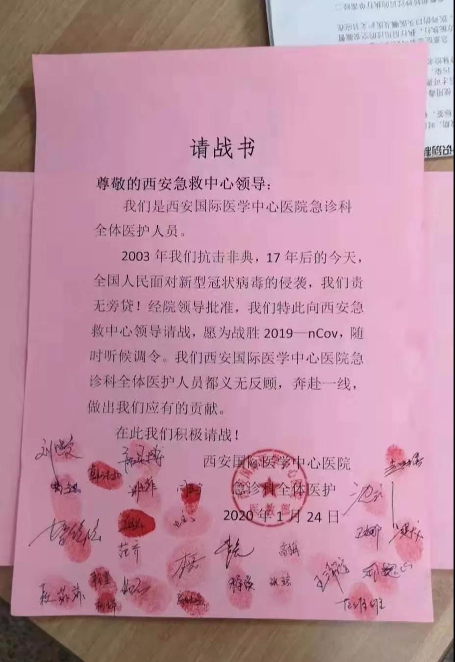 第一時(shí)間全院各護(hù)理單元護(hù)士長(zhǎng)、護(hù)士踴躍主動(dòng)報(bào)名。急診科全體醫(yī)護(hù)人員和胸科醫(yī)院等遞交了決心書(shū)。