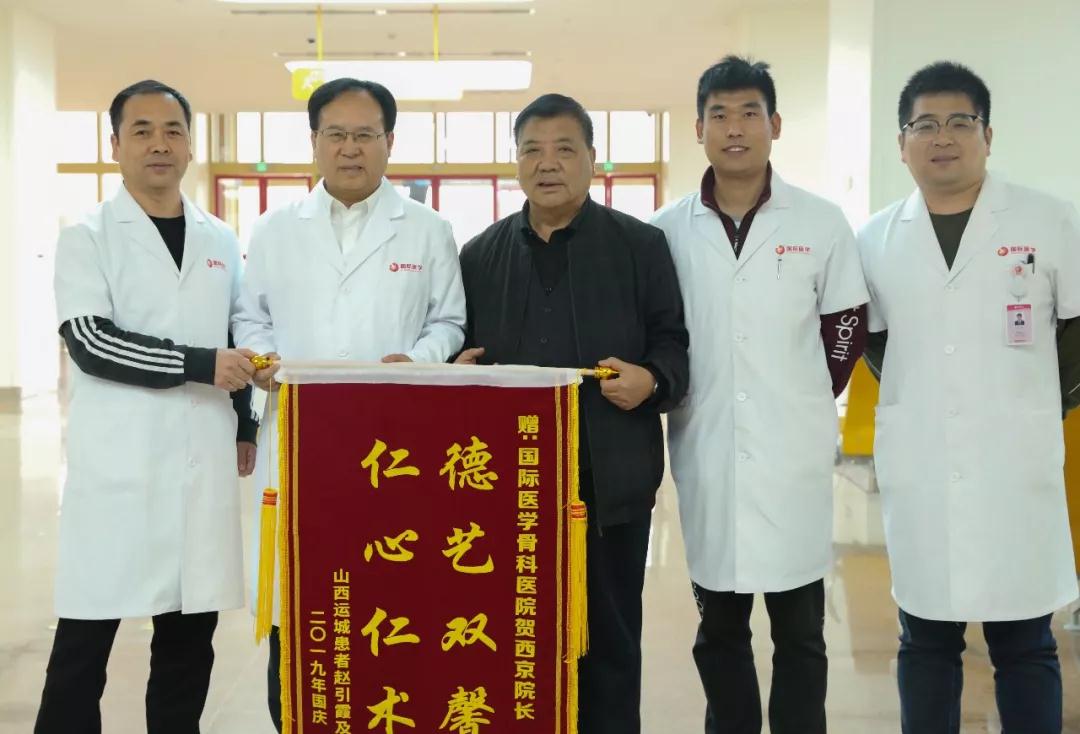 10月9號(hào)下午兩點(diǎn)半,患者家屬專(zhuān)程來(lái)到骨科醫(yī)院向賀西京院長(zhǎng)贈(zèng)送錦旗以示感謝。所有參與手術(shù)的醫(yī)護(hù)工作者都非常欣慰,并表示會(huì)再接再厲,珍惜每一次服務(wù),一次做好。