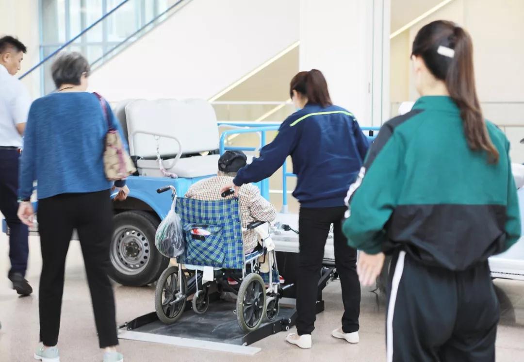 義診現(xiàn)場有位96歲的老人,因下肢水腫在家屬陪同下來院咨詢,心臟內(nèi)科李艷副主任醫(yī)師接待患者并悉心解答問題。因患者乘坐輪椅行動不便,我院為其提供了“招手?!彪娖寇嚪?wù),電瓶車的升降臺為患者上下車提供很大便利。家屬表示“很貼心,從來沒有在醫(yī)院見過這樣的服務(wù)!”