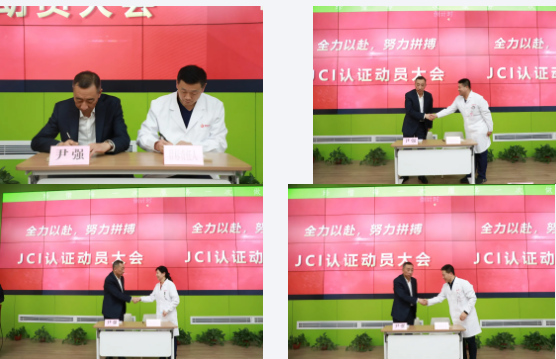尹強(qiáng)院長(zhǎng)與專科醫(yī)院院長(zhǎng)、臨床科室、醫(yī)技科室、檢驗(yàn)中心及機(jī)關(guān)職能部門主任、代表,簽署了《評(píng)審目標(biāo)責(zé)任書》。消化病醫(yī)院執(zhí)行院長(zhǎng)韓國(guó)宏、腫瘤一病區(qū)黎冬梅護(hù)士長(zhǎng)分別發(fā)言,一致表示,一定積極參與、配合、支持相關(guān)工作,為我院順利通過(guò)JCI認(rèn)證工作全力以赴!