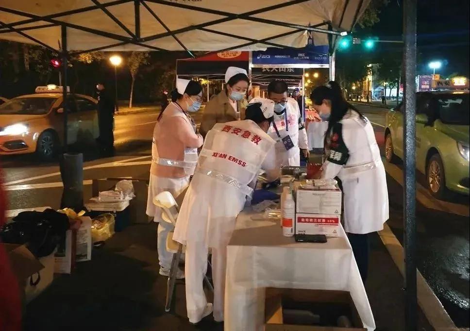 凌晨4點(diǎn),醫(yī)療保障組分成3隊(duì),分乘4輛車從醫(yī)院統(tǒng)一出發(fā)前往賽事現(xiàn)場。到達(dá)指定地點(diǎn)后,團(tuán)隊(duì)立刻按照前期演練分工進(jìn)行相關(guān)準(zhǔn)備工作。7點(diǎn)30分,2020西安國際馬拉松正式鳴槍開跑,現(xiàn)場保障人員及時響應(yīng),積極救助受傷參賽選手,專業(yè)的技術(shù)和溫馨的言語,讓受傷的的選手們感到溫暖。