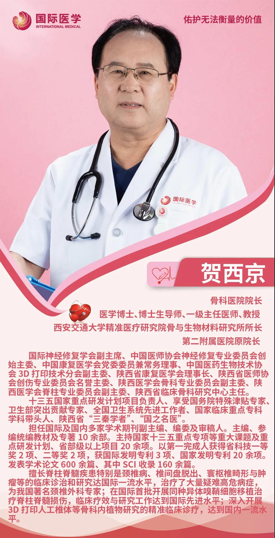 近年來,賀西京院長深入開展 3D 打印人工椎體等骨科內(nèi)植物研究的精準(zhǔn)臨床診療,創(chuàng)建國內(nèi)一流水平的手術(shù)方法及規(guī)程。賀西京教授的團(tuán)隊(duì)在國際上創(chuàng)新性地提出了椎體次全切術(shù)后“可動(dòng)人工椎體——椎間盤復(fù)合體”植入、重建頸椎運(yùn)動(dòng)單位功能的理念,研制出“可動(dòng)人工頸椎假體”和人工寰齒關(guān)節(jié),同時(shí),還應(yīng)用嗅鞘細(xì)胞移植治療脊髓損傷,并在多家三甲醫(yī)院進(jìn)行推廣應(yīng)用。