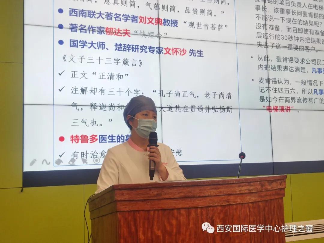 倪曉慧總護(hù)士長以“護(hù)士長的時間管理”為主題,為培訓(xùn)班帶來了精彩的第一講。她從時間管理的理論及原理出發(fā),結(jié)合實際護(hù)士長的日常工作案例,深入淺出介紹了時間管理的方法和技巧。