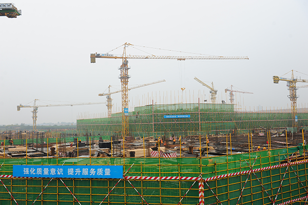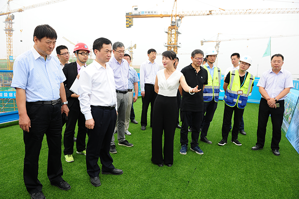 隨后李毅一行在史總帶領(lǐng)下,來到工地現(xiàn)場的二層觀景平臺,面對規(guī)模宏大,塔吊林立的建筑現(xiàn)場,看到項目整體浮出地面,中心醫(yī)技樓已建至二層,李書記對項目建設(shè)進度表示驚喜,同時對建設(shè)管理表示肯定。期間,史總結(jié)合施工現(xiàn)場和效果圖為李書記詳細介紹了國際醫(yī)學(xué)城的建設(shè)架構(gòu),功能劃分等情況,之后還就規(guī)劃建設(shè)的“一心兩翼 天使之城”健康中國小鎮(zhèn)的設(shè)計理念,“五位一體”功能布局等做了詳細介紹和說明。