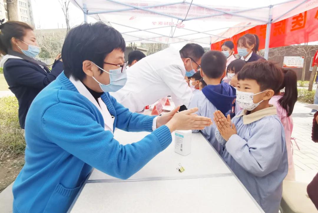 在創(chuàng)匯社區(qū)義診現場,高新第八幼兒園的小朋友們在醫(yī)護人員的帶領下學做“洗手操”。醫(yī)生用通俗易懂的語言,詳細講解了洗手的重要性及如何正確洗手遠離細菌等相關知識,分步驟教會了小朋友們如何正確洗手。同時,醫(yī)護人員還為小朋友們介紹了體檢車的功能及用途,并帶領大家進入體檢車參觀。
