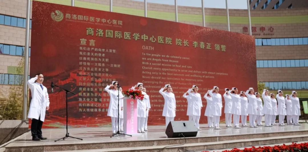 隨后,商洛國際醫(yī)學(xué)中心醫(yī)院舉行了新員工入職授帽儀式,600余位醫(yī)護(hù)工作者在院長李春正院長帶領(lǐng)下莊嚴(yán)宣誓:“我們是天的使者,以救死扶傷為天職,施天使之愛,佑百姓健康……”