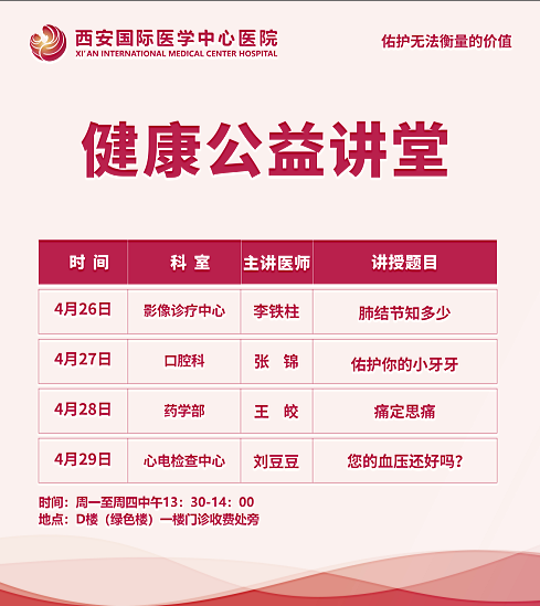 西安國際醫(yī)學中心醫(yī)院—青年醫(yī)師健康公益講堂預(yù)告
