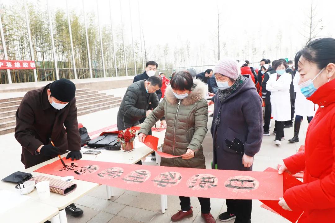 隨著筆鋒或抑或揚,一副副優(yōu)美的書法對聯躍然紙上?!疤煸鰵q月人增壽,春滿乾坤福滿門”、“春風得意財源廣,平安富貴家業(yè)興”……書寫內容有對醫(yī)務工作者的寄語,也有對患者的祝福。散發(fā)著清新墨香的大紅春聯展現在人們眼前,不僅傳遞了傳統(tǒng)文化理念,更為醫(yī)院增添了書法藝術氣息,營造了共同品鑒藝術作品、感受書法樂趣的濃厚氛圍。
