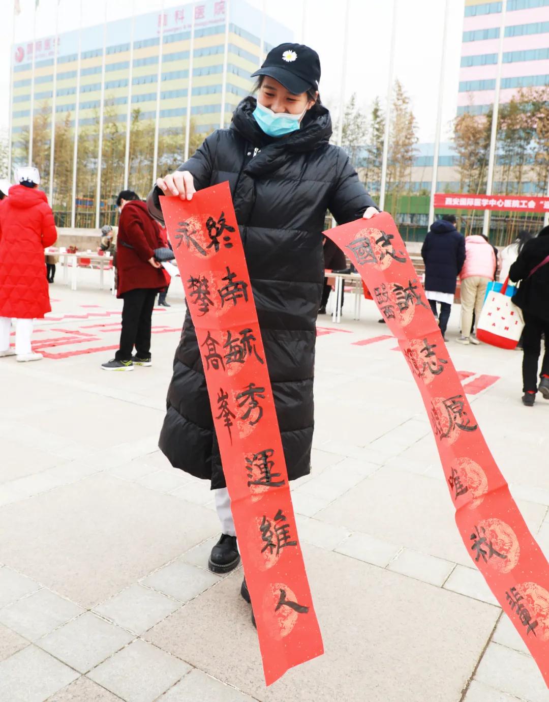 全天活動中,書法名家為現場群眾書寫了600余副對聯,得到群眾的一致認可和熱烈歡迎,大家接過寫滿祝福和美好祝愿的對聯時,喜悅之情溢于言表?!翱吹綄β?,就覺得春節(jié)的腳步越來越近了,謝謝醫(yī)院這么暖心?!币晃皇峙鯇β摰幕颊呒覍俑吲d地說。
