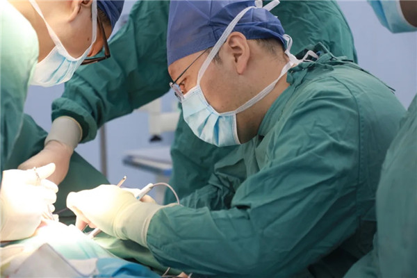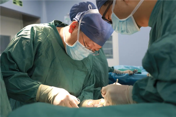 做好了充分準備與預(yù)案,手術(shù)臺前的劉曉敏鎮(zhèn)定專注,在分離切斷王金花的甲狀腺懸韌帶后,他抽絲剝繭,一根根處理甲狀腺上極血管,繼而結(jié)扎切斷甲狀腺中、下的靜脈、動脈,在由峽部切斷處起始分離甲狀腺背面時,劉曉敏仔細辨認喉返神經(jīng)和甲狀旁腺,確保不傷分毫。一般情況下,手術(shù)至此可以順利結(jié)束??赏踅鸹ㄊ俏焕淆g患者,由于氣管軟化,加上腫塊長久壓迫,氣管就像失去回彈力的彈簧,從醫(yī)學(xué)角度看,患者已可以治愈,短期也無生命大礙,可彈不起來的“彈簧”還會重新聚攏在一起,讓老太太喘不上氣。一次手術(shù)能解決的問題,絕不讓患者再受二茬罪,劉曉敏又對王金花實施氣管懸吊術(shù),把“癱瘓”了的氣管朝兩邊拉起,給氣管留出足夠的空間出氣。