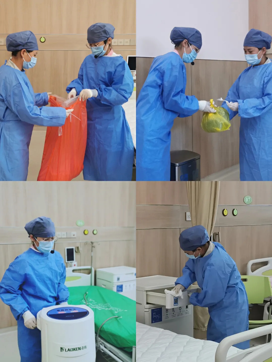 為進(jìn)一步做好疫情防控常態(tài)化工作,提升醫(yī)院新冠肺炎疫情防控應(yīng)急處置實(shí)戰(zhàn)能力及組織協(xié)調(diào)能力,更好的將應(yīng)急預(yù)案應(yīng)用到實(shí)際工作中,以達(dá)到出現(xiàn)特殊患者時(shí)能規(guī)范、有序進(jìn)行處置的目的。7月29日下午,由感控部、醫(yī)教部聯(lián)合組織的“病區(qū)出現(xiàn)新冠肺炎患者密切接觸者應(yīng)急處置演練”在眼科病區(qū)展開。