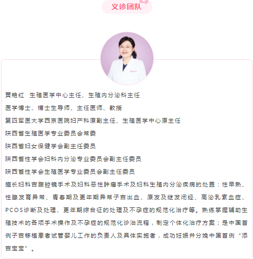 1、預(yù)約掛號(hào)患者請(qǐng)預(yù)約生殖內(nèi)分泌科黃艷紅主任,就診時(shí)請(qǐng)帶齊所有檢驗(yàn)、檢查結(jié)果,就診以六位專家會(huì)診的形式進(jìn)行。聯(lián)系人連肖18629583641。
