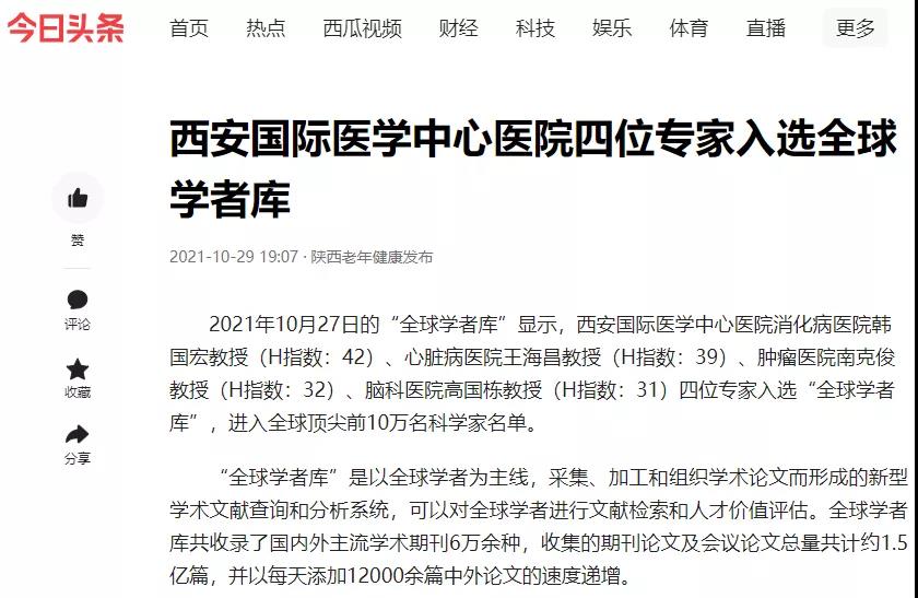 西安國(guó)際醫(yī)學(xué)中心醫(yī)院四位專家入選全球?qū)W者庫(kù)