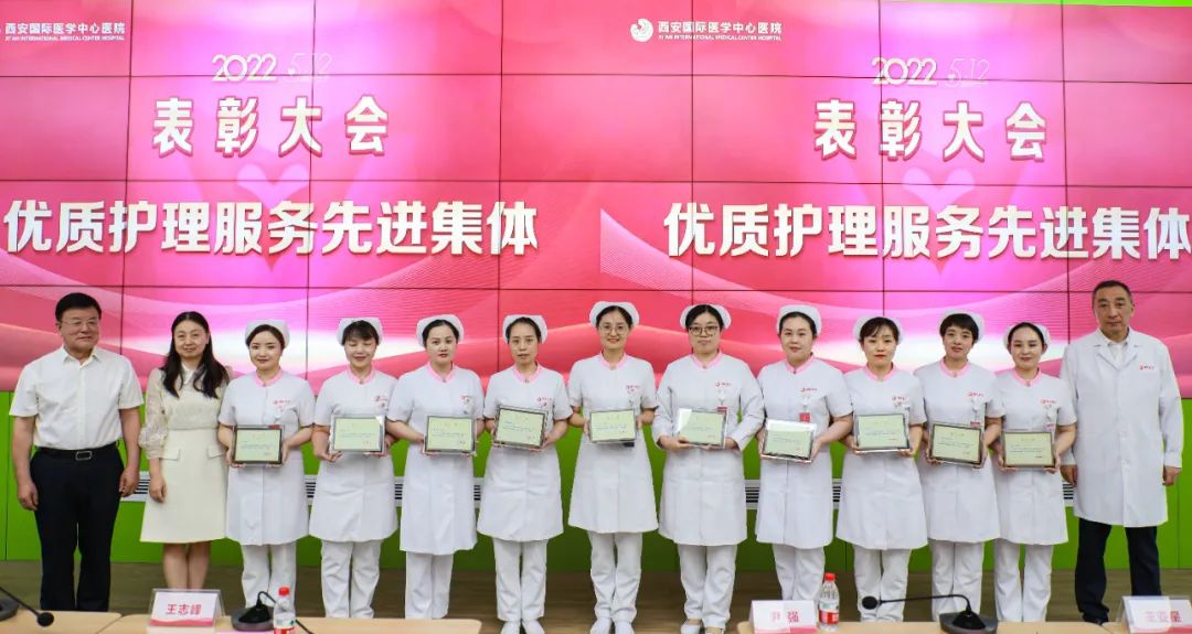 在第111個國際護士節(jié)來臨之際,西安國際醫(yī)學中心醫(yī)院舉行“5.12護士節(jié)”表彰會。院長尹強、總經理王志峰、財務總監(jiān)王亞星、副院長楊峰、張斌、劉延彤等領導出席,各專科醫(yī)院、科室負責人、受到表彰人員及各科室護士代表參加。會議由護理部張敏主任主持。