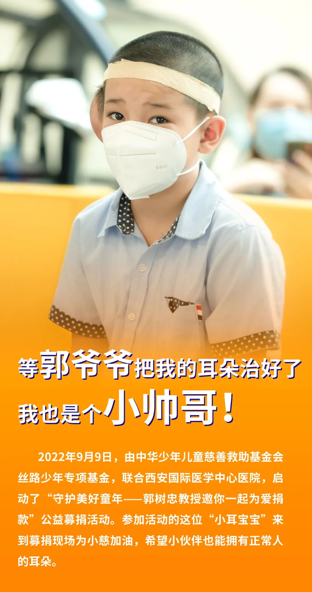 為了使更多“先天重疾兒童”恢復健康、快樂成長,9月9日,由中華少年兒童慈善救助基金會絲路少年專項基金,聯合西安國際醫(yī)學中心醫(yī)院,全面啟動了“守護美好童年——郭樹忠教授邀你一起為愛捐款”公益募捐活動。
