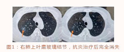 肺內的磨玻璃結節(jié)可以是腫瘤,也有可能是肺部的急、慢性炎癥、肺結核、肺內淋巴結、慢性肉芽腫性炎,甚至可以是肺內的出血灶等。因此,發(fā)現(xiàn)肺部有磨玻璃結節(jié)不一定都是得了肺癌,炎癥或其它良性病變的可能性也很大??紤]良性病變的結節(jié)一般只需要定期隨訪和觀察即可;懷疑炎癥時,可以考慮抗炎治療后復查CT(如圖1:男性患者,體檢發(fā)現(xiàn)右肺上葉磨玻璃結節(jié),我們考慮炎癥可能,經積極抗感染治療,3個月后復查CT磨玻璃結節(jié)完全消失)。對于一些確實懷疑有早期癌變可能的磨玻璃結節(jié)(包括:純磨玻璃結節(jié)和有一定實性成分存在的混合磨玻璃結節(jié)),則需要根據結節(jié)大小、其內實性成分的多少等綜合判斷,制定隨訪和手術策略。