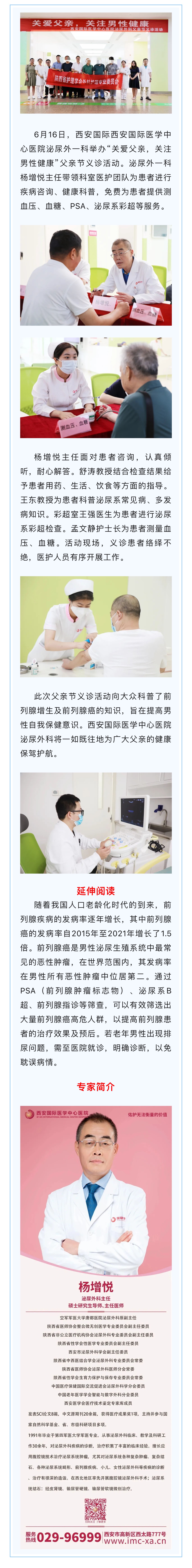 西安國際醫(yī)學(xué)中心醫(yī)院泌尿外科舉辦父親節(jié)義診活動