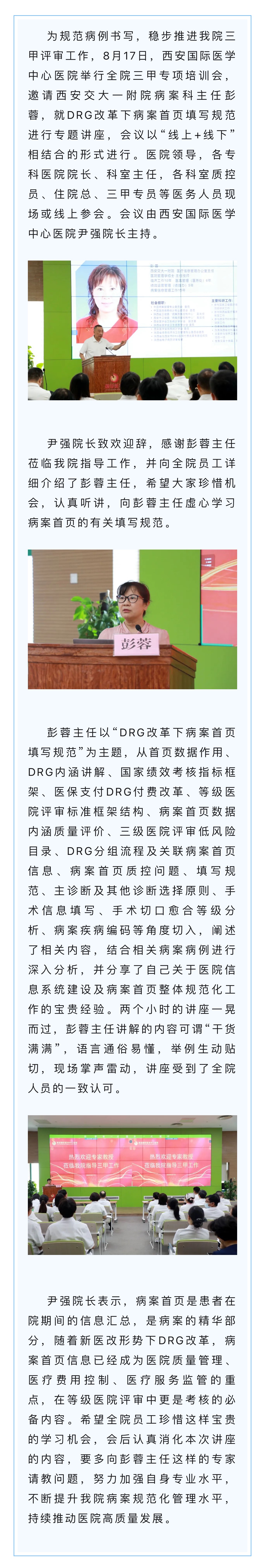 DRG改革下病案首頁填寫規(guī)范——西安國際醫(yī)學(xué)中心醫(yī)院舉行三甲專項培訓(xùn)會