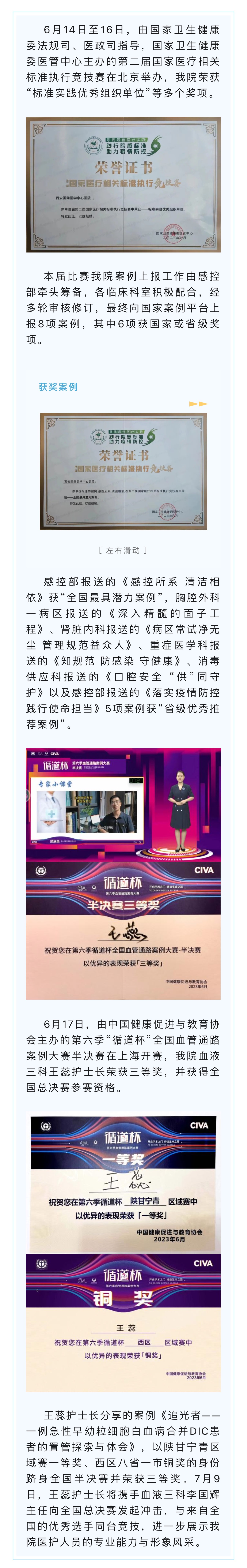我院在第二屆國家醫(yī)療相關(guān)標(biāo)準(zhǔn)執(zhí)行競(jìng)技賽及第六季“循道杯”全國血管通路案例大賽中獲多個(gè)獎(jiǎng)項(xiàng)