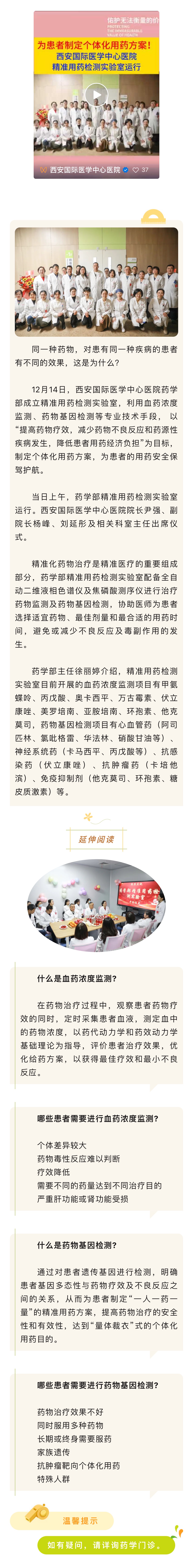 為患者制定個(gè)體化用藥方案!西安國際醫(yī)學(xué)中心醫(yī)院精準(zhǔn)用藥檢測實(shí)驗(yàn)室運(yùn)行